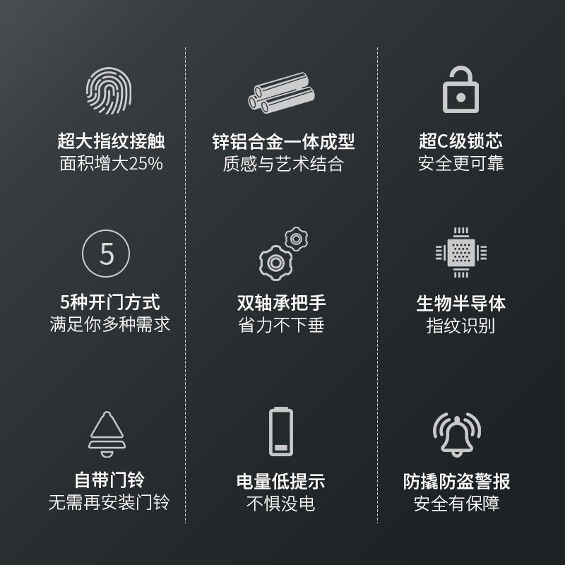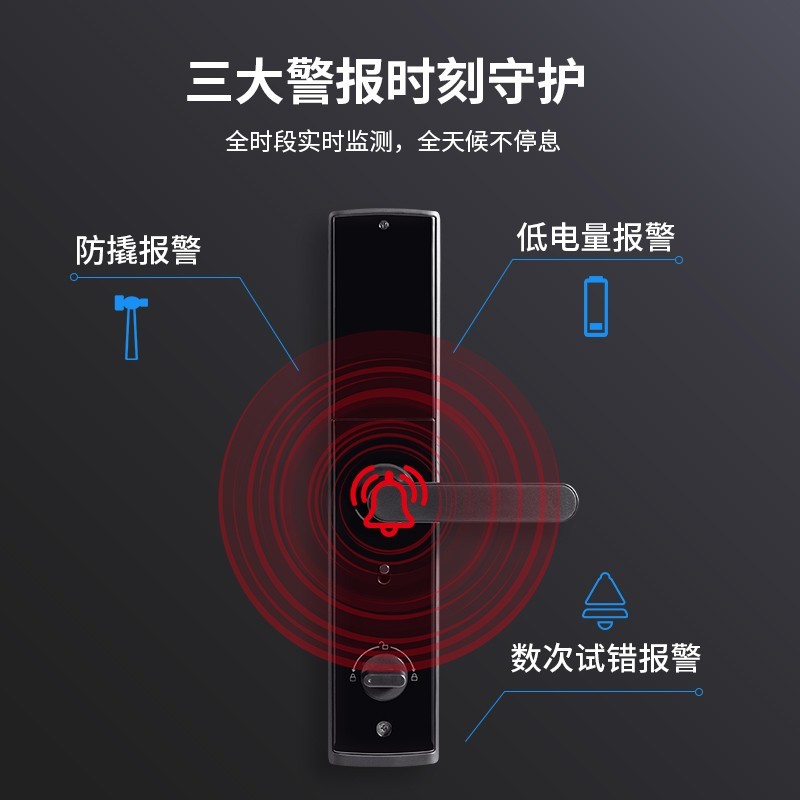 太陽雨智能鎖/黑色鋁合金/5種開鎖/防撬報警/鋼體鎖芯/ZW0001