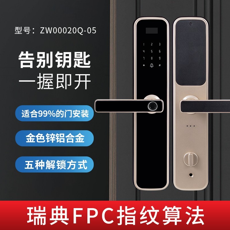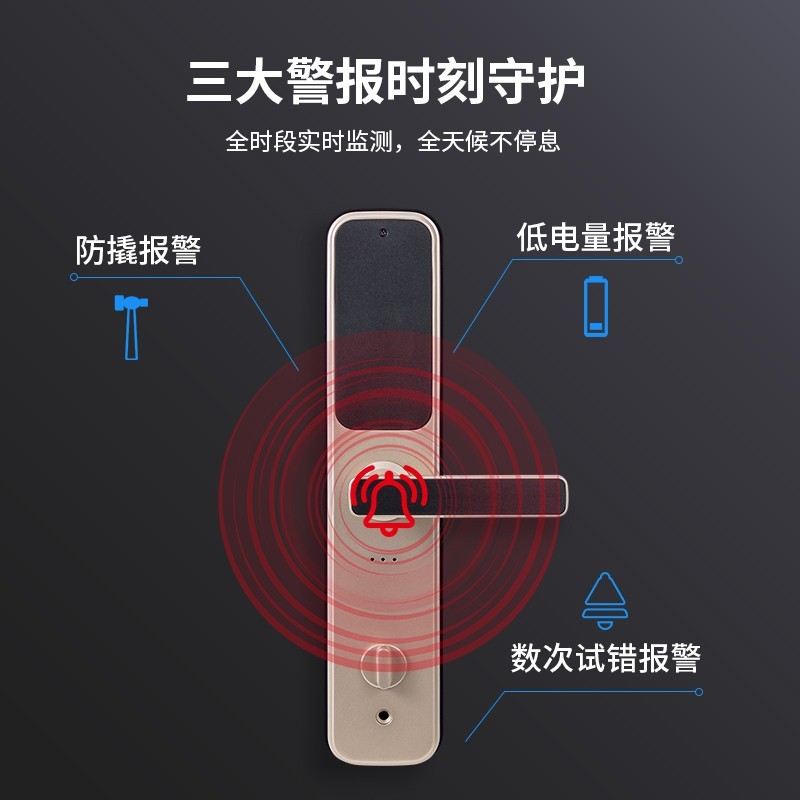 太陽雨智能鎖/金色鋅鋁合金/5種開鎖/防撬報警/鋼體鎖芯/ZW0002